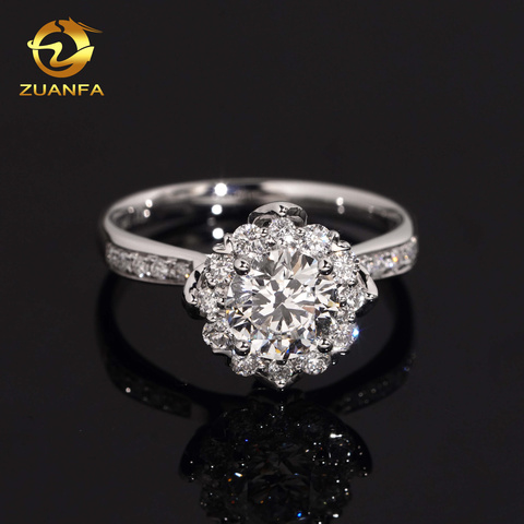 ZuanfaメイドIGI証明書ラボ成長ダイヤモンド18Kソリッドゴールドリングハロー女性リング結婚婚約指輪